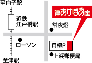 ※津あけぼの座には駐車場はございません。公共交通機関のご利用、近隣コインパーキングをご利用下さい。